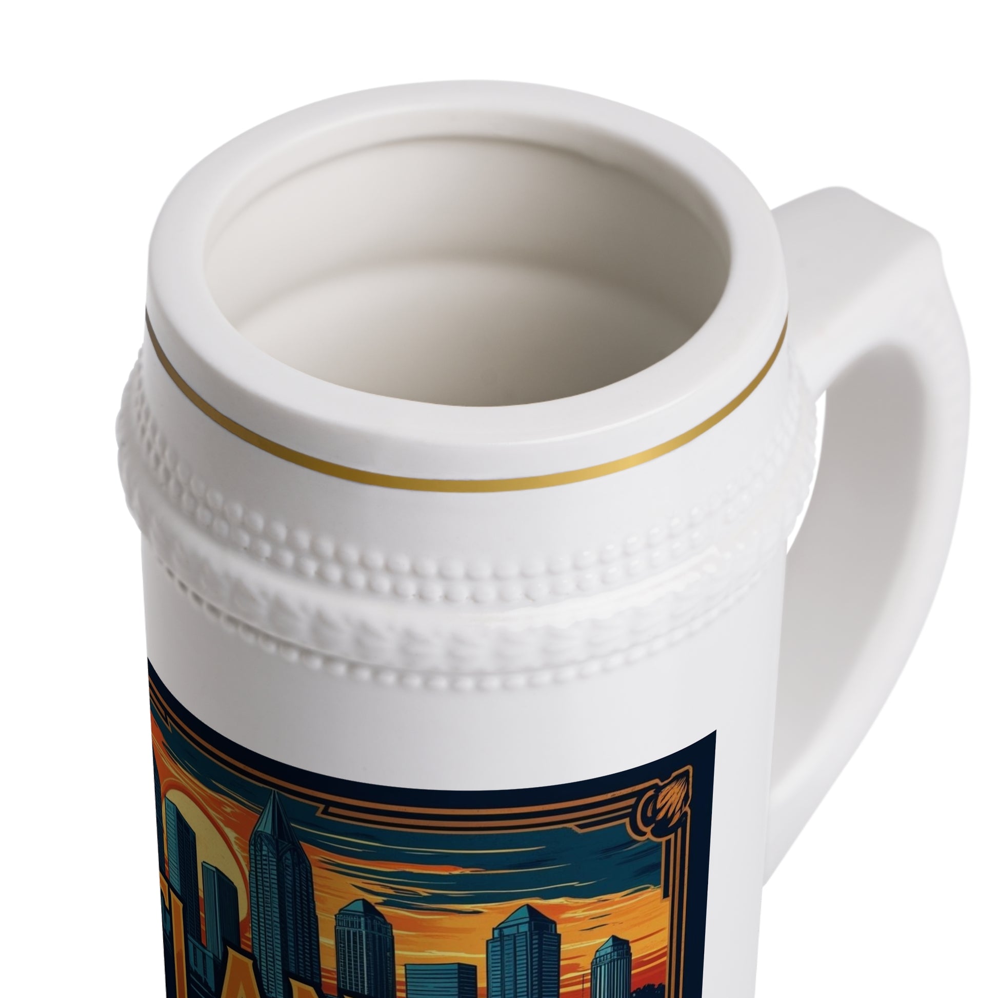 Enjoy your favorite brews in style with this exquisite Beer Stein Mug. Crafted from 100% white ceramic, it features beautiful gold-colored detailing that adds a touch of elegance to your drinking experience. The large handle ensures a comfortable grip, making it perfect for both casual gatherings and festive celebrations. Ideal for beer enthusiasts and collectors, this stein is not only a conversation starter but also a practical addition to any home bar or kitchen. Perfect for holidays, parties, or gift-giving occasions such as birthdays, anniversaries, and housewarmings, this Beer Stein Mug is a must-have for those who appreciate quality and design.