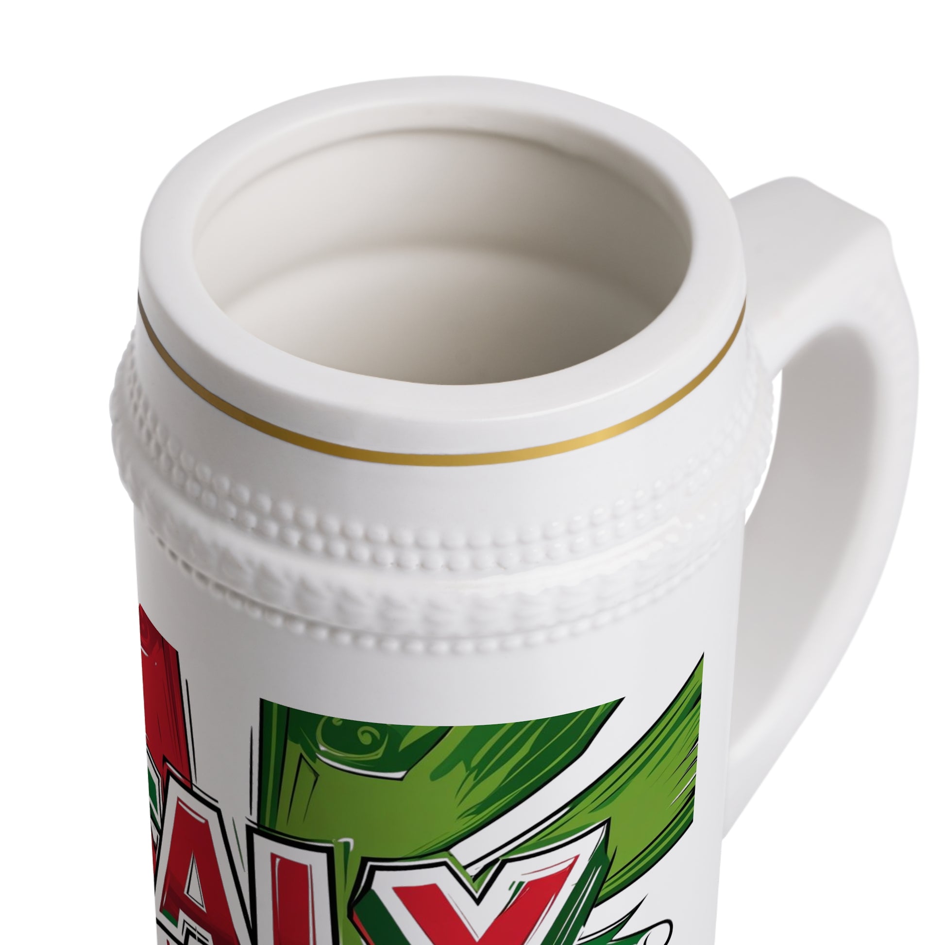 Raise a toast with this elegant Beer Stein Mug, perfect for any celebration! Crafted from 100% white ceramic, this stein showcases a stylish design with gold-colored details that add a touch of sophistication. Its large handle provides a comfortable grip, making it ideal for enjoying your favorite brews at parties, barbeques, or quiet evenings at home. This distinctive piece is designed for anyone who appreciates fine craftsmanship and enjoys sharing a drink with friends. Whether you're celebrating birthdays, holidays, or special moments, this beer stein is a fantastic addition to any gathering. The ORCA coating ensures that the vibrant colors remain bright and eye-catching, making it not just a functional item, but a beautiful decor piece as well. This versatile mug is a thoughtful gift for beer enthusiasts, perfect for occasions like Father’s Day, graduations, or housewarming parties!
